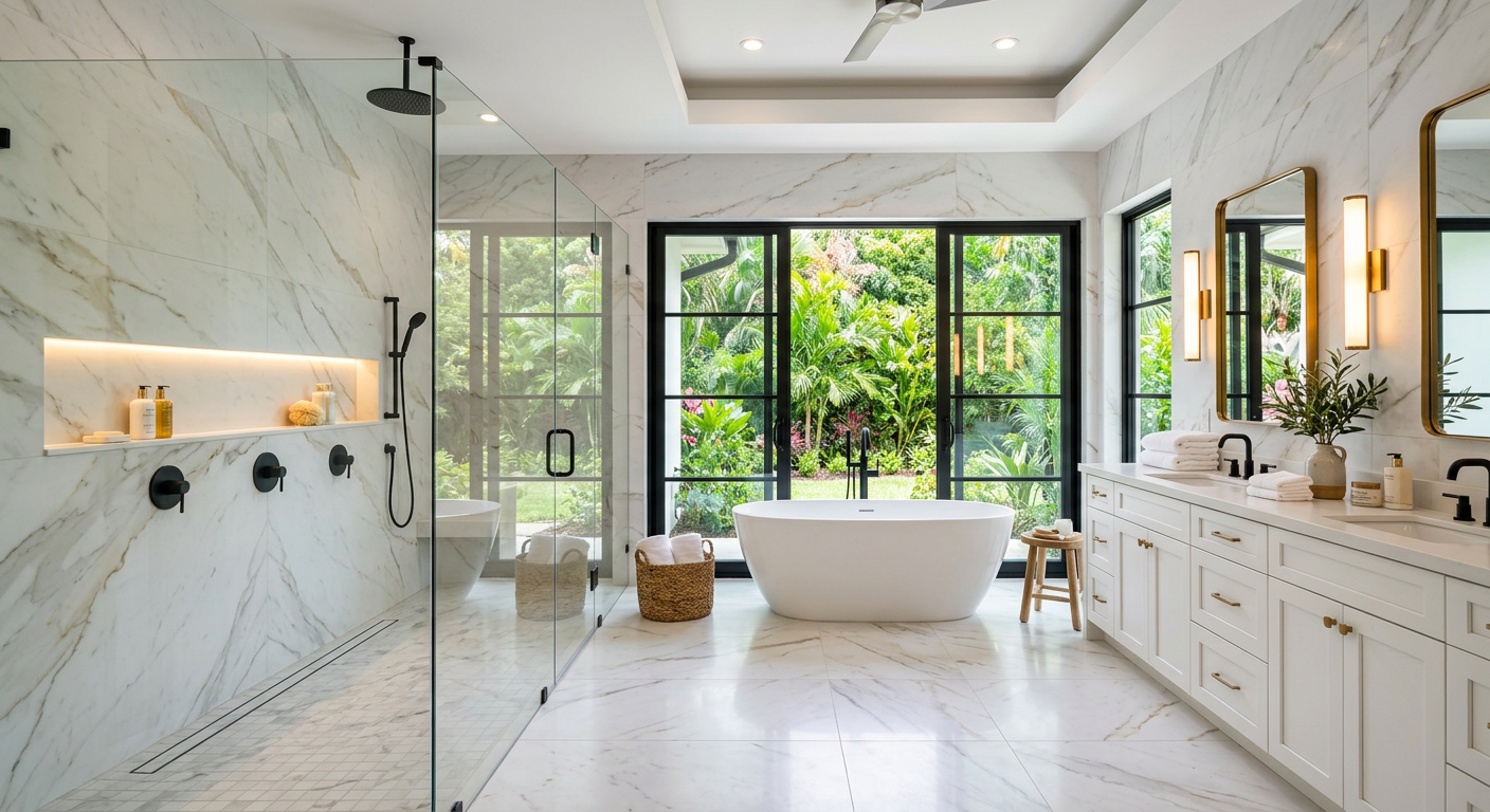 Clean, comfortable bathroom upgrades with better layouts, lighting, ventilation, and durable, high-end finishes.